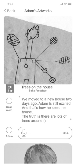An organized place to save children's artworks. An app that will allow parents to save their children artworks without storage limit and will keep childhood memories safely for the future.